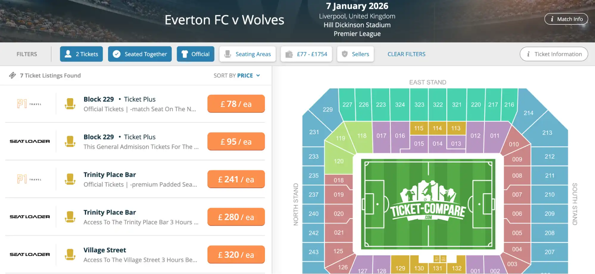 Spara pengar och hitta bästa utbudet genom prisjämförelse. Everton samarbetar med flera officiella partners som distribuerar hospitality-biljetter på andrahandsmarknaden.